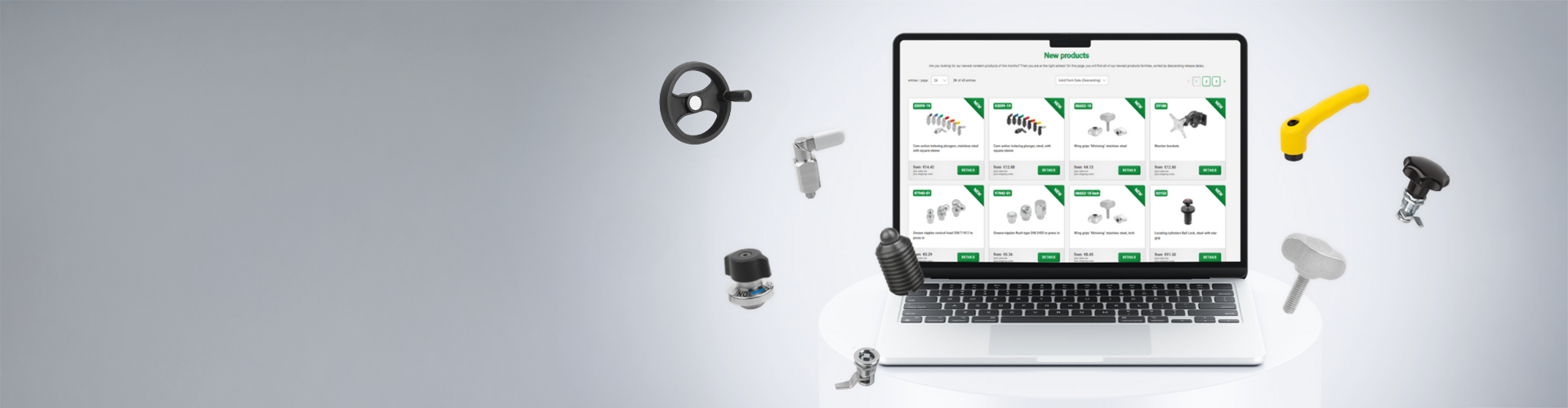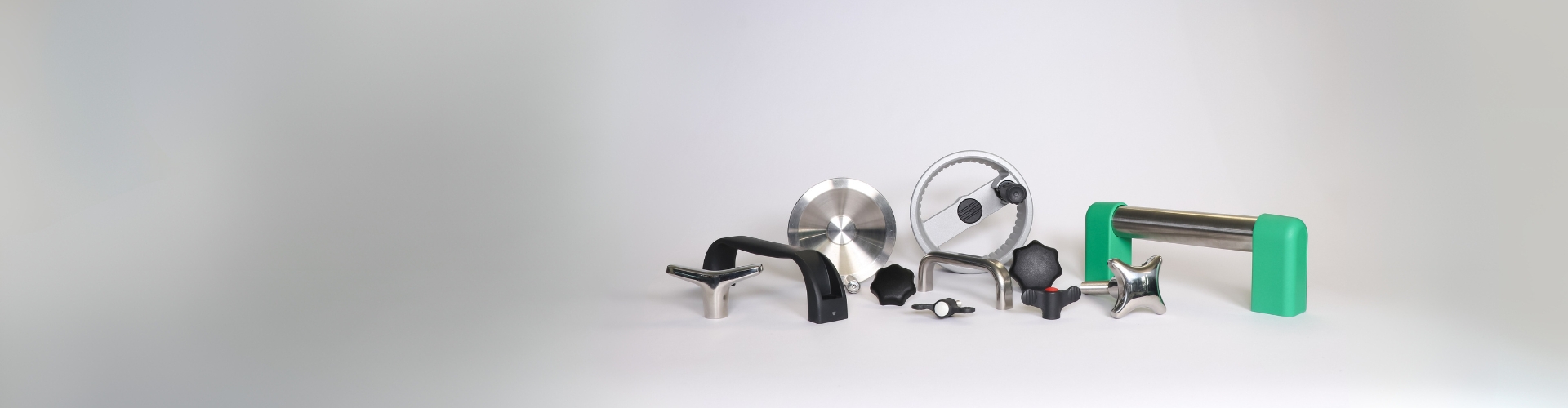 Der Produktbereich 06000 umfasst Bedien- und Feststellelemente wie Rändelmuttern und Rändelschrauben, Kreuzgriffe und Sterngriffe, Spannhebel und Klemmhebel.